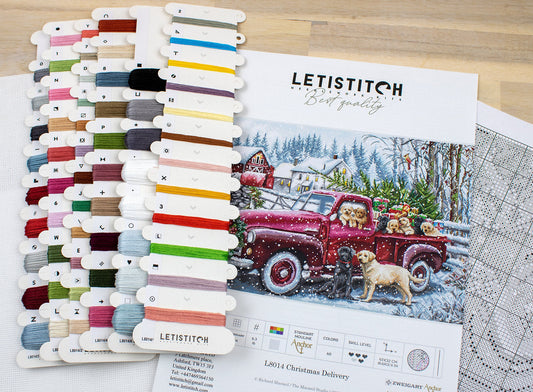 Kit de Punto de Cruz 'Trineo de Cachorros' L8014 de LETISTITCH - Espíritu Festivo Hecho a Mano