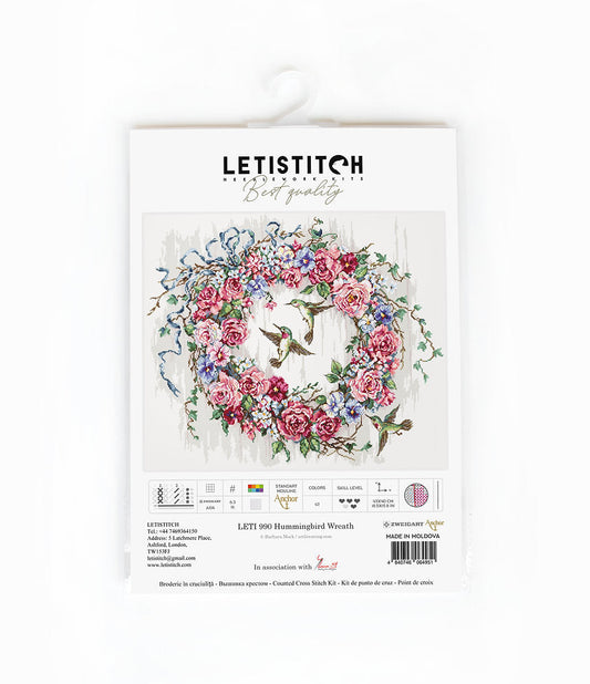 LETI 990 Hummingbird Wreath - LETISTITCH - Kit de Punto de Cruz