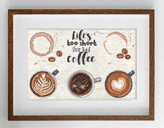 Kit de Punto de Cruz Letistitch L8097 "La Vida es Demasiado Corta para un Mal Café"