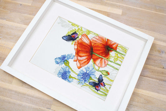BU4018 Amapolas y Mariposas - Luca-S - Kit de Punto de Cruz