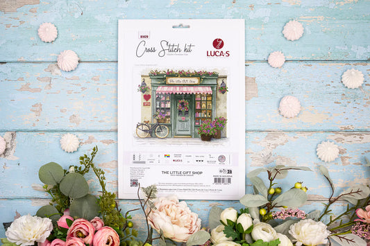 Luca-S B1429 – The Little Gift Shop | Kit de punto de cruz con tienda de regalos romántica