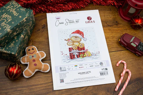 Luca-S B1431 – Holiday Gifts | Kit de punto de cruz navideño con osito y regalos
