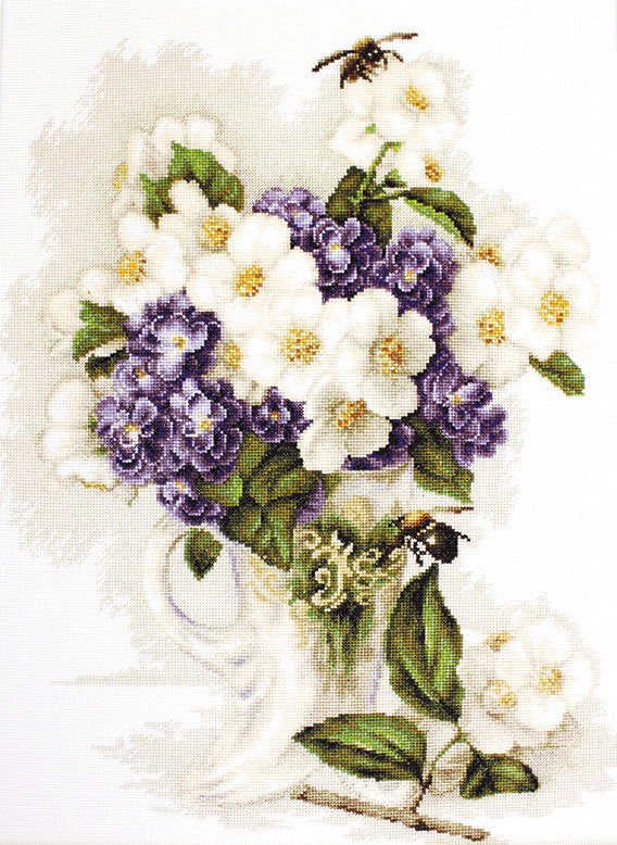 B512 Jarron con jazmin - Luca-S - Kit de punto de cruz