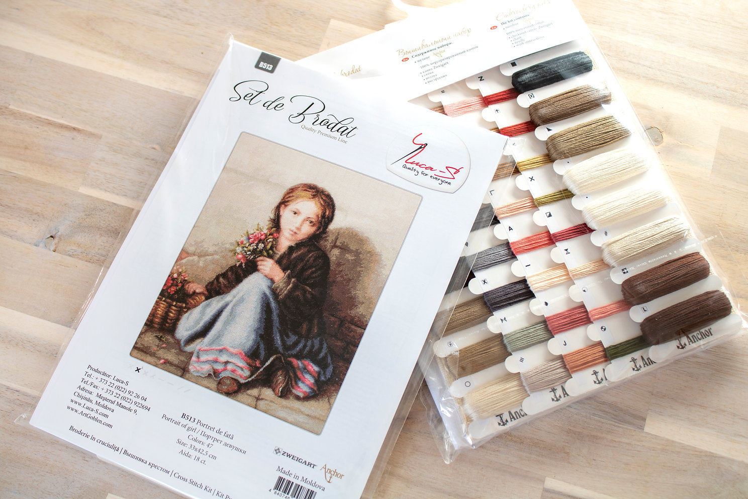 B513 Niña vendiendo flores - Luca-S - Kit de Punto de Cruz