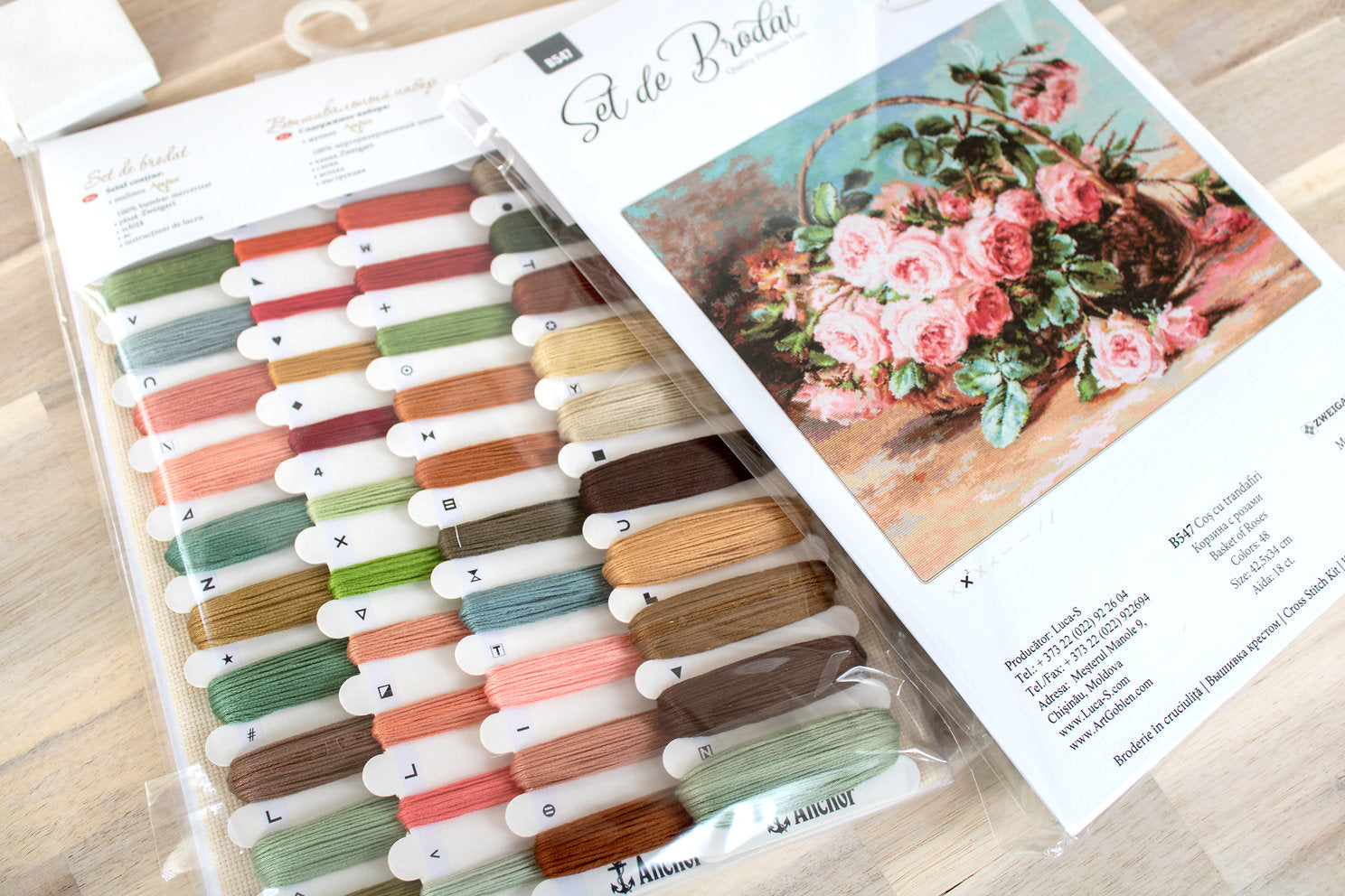 B547 Cesta de rosas rosadas - Kit de Punto de Cruz Luca-S