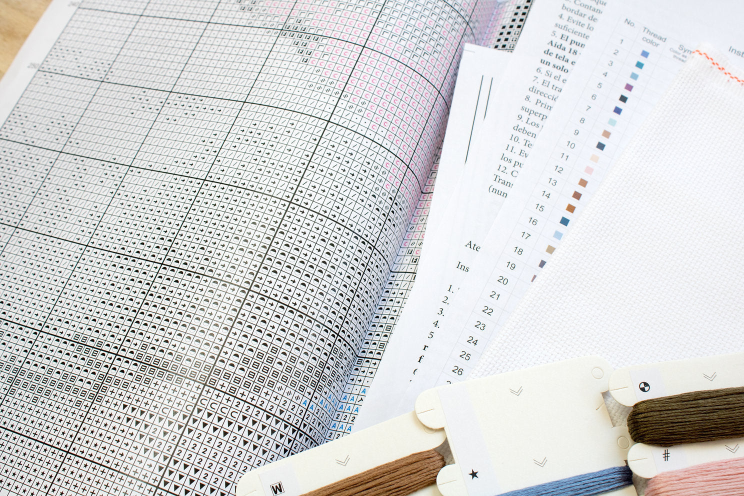 Agujas, gráfico en blanco y negro e instrucciones en 10 idiomas.
