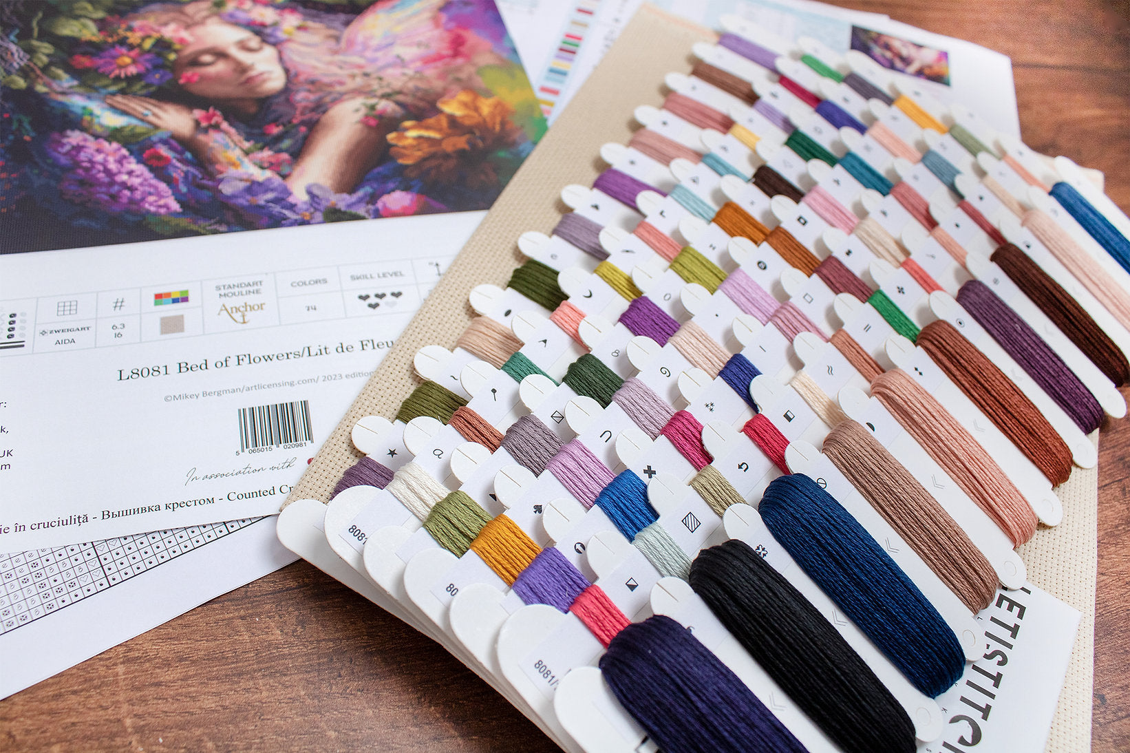 Techniques / cross stitch X2 / half of cross / 2 / french knot 1 strand/ backstitch 1/2 strands / mixed colors