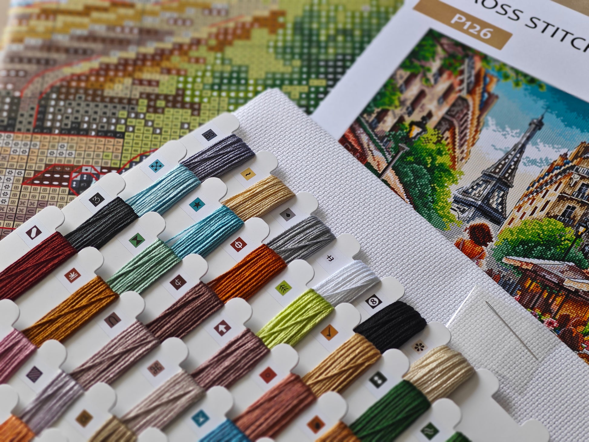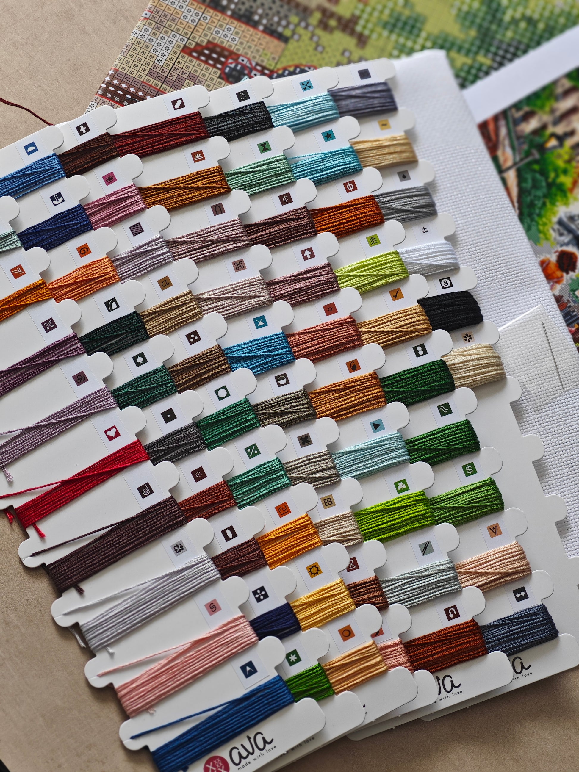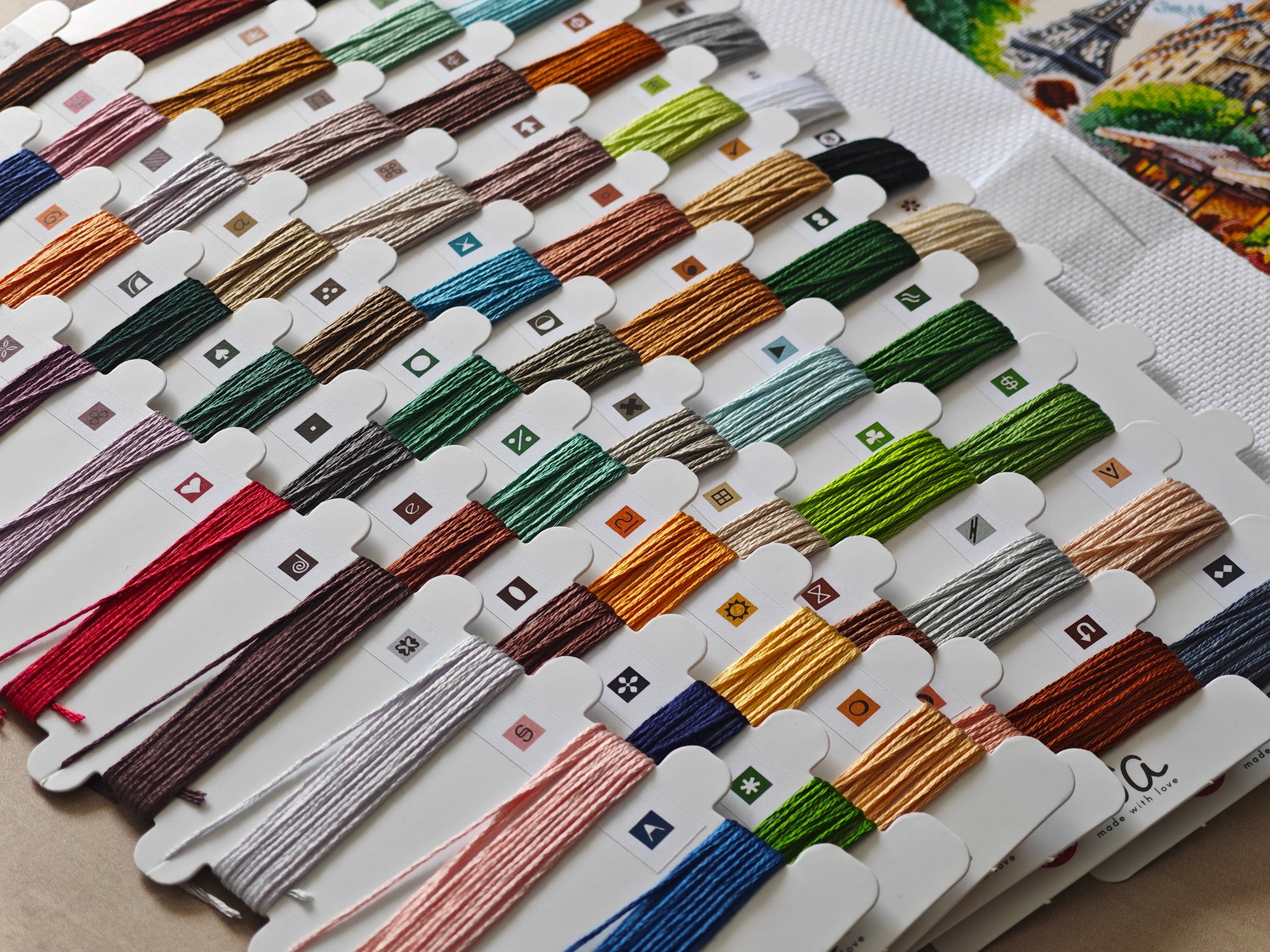 Threads: A mix of Luca-S and DMC threads, offering a palette of 66 colors