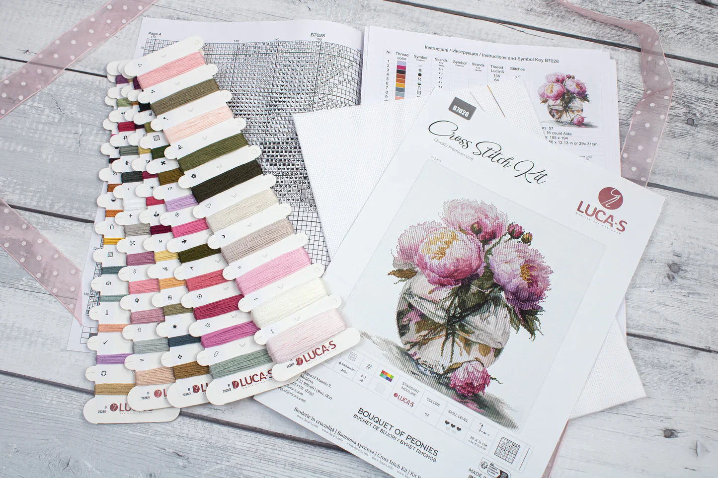 Kit de Punto de Cruz - Ramo de Peonías - B7028 Luca-S