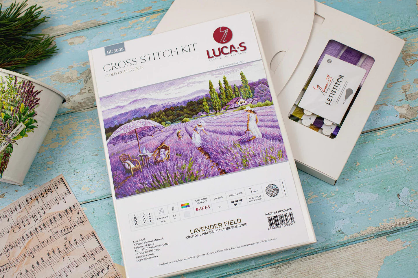 ¡Crea un hermoso paisaje con el Kit de Punto de Cruz Campo de Lavanda de Luca-S Gold! Con tela Zweigart 16ct AIDA blanca de 65 x 46 cm y 319 x 200 puntadas, este kit te ofrece una experiencia de calidad premium. Con hilos "Luca-S" mouliné de algodón 100%, agujas No.26 y un gráfico en blanco y negro A3, esta obra de arte será un éxito para cualquier nivel de habilidad. Con una medida terminada de 19.94 x 12.50 in, diseñada por la artista Elena Samarskaya, estas técnicas de punto de cruz y punto lineal te mantendrán entretenido por horas. ¡Haz un regalo único con el Kit de Punto de Cruz Campo de Lavanda de Luca-S Gold!
