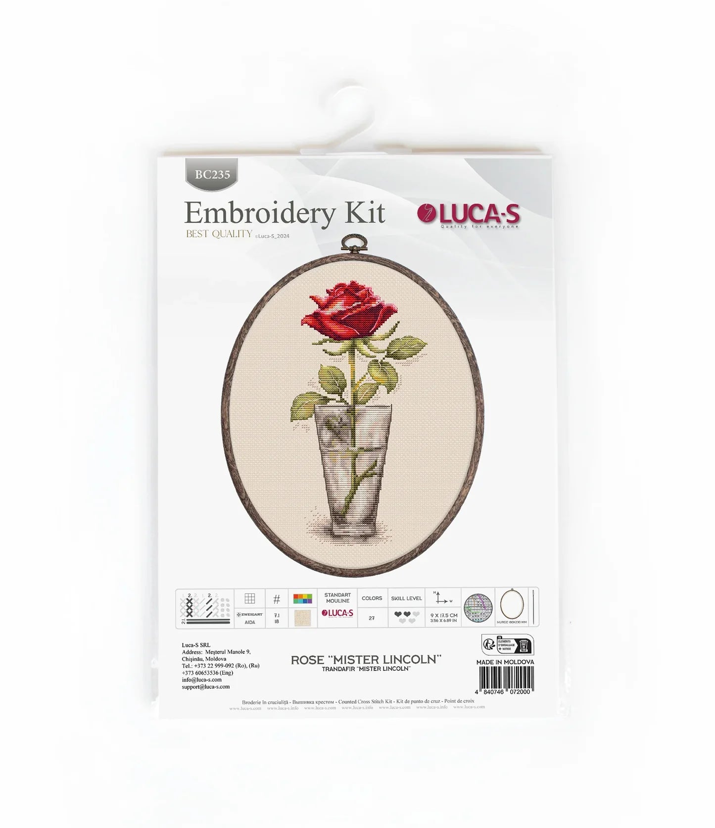 Kit de Punto de Cruz con Aro Incluido Luca-S - Rosa “Mister Lincoln”, BC235