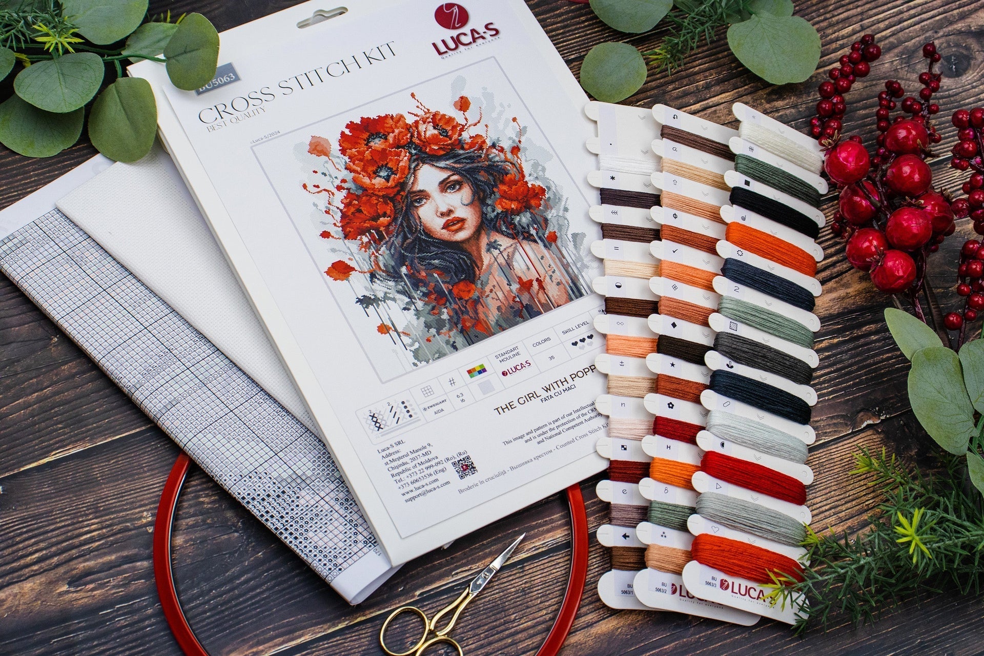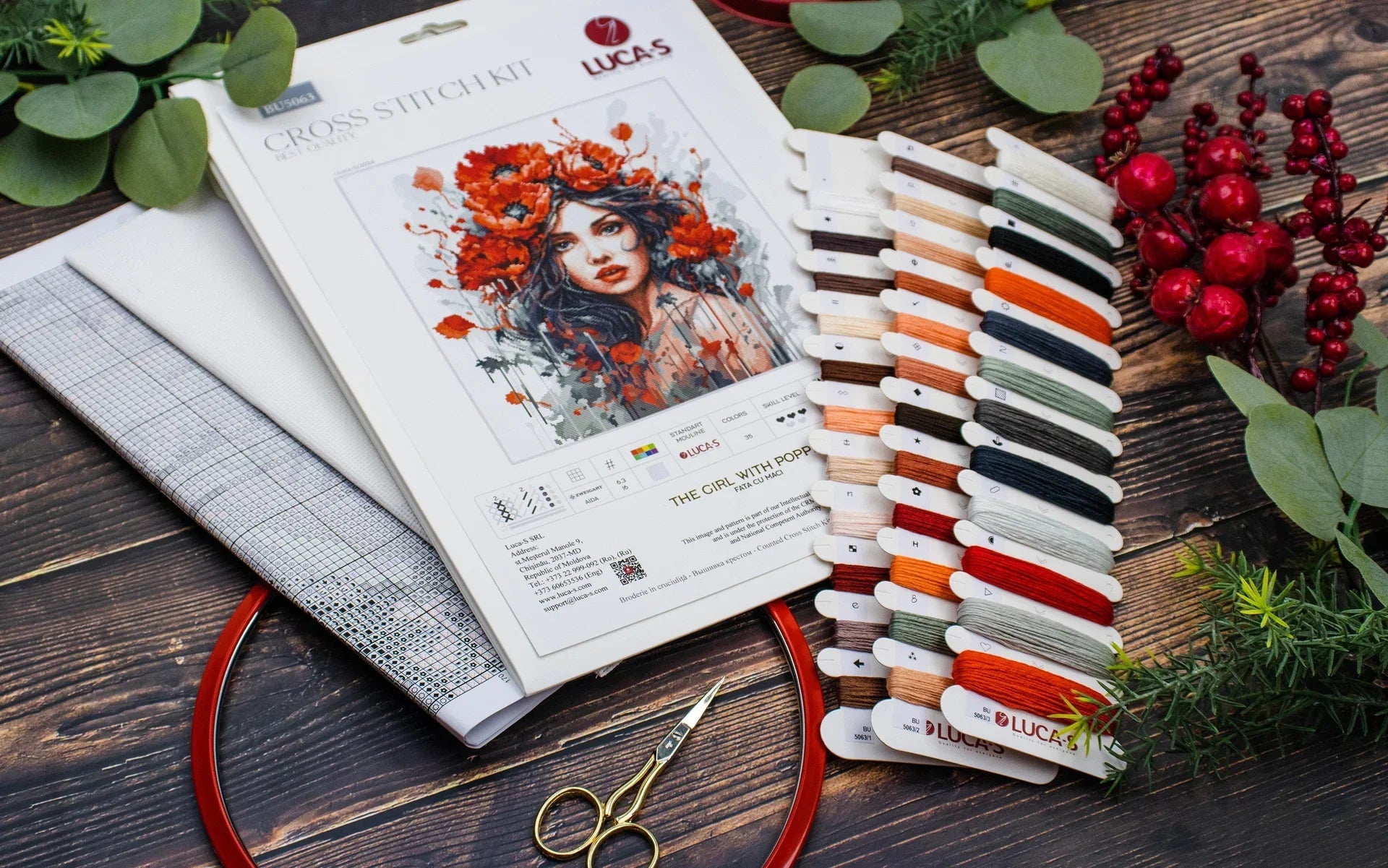 Kit de Punto de Cruz - "The Girl With Poppies" de Luca-S, BU5063