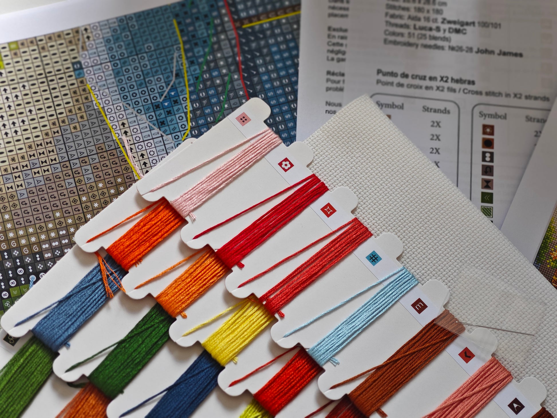 Threads: A mix of Luca-S and DMC threads, offering a palette of 51 colors with 25 unique combinations to bring the design to life.