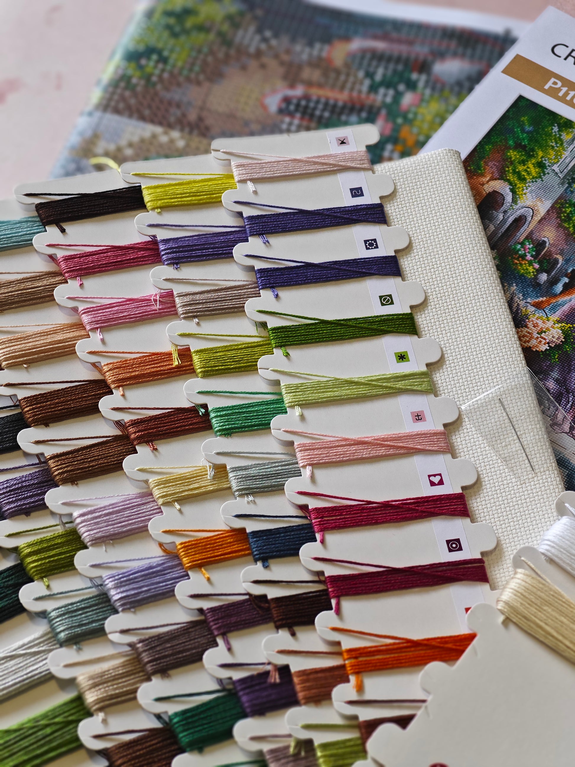 Threads: A mix of Luca-S and DMC threads, offering a palette of 62 colors with 25 unique combinations to bring the design to life.